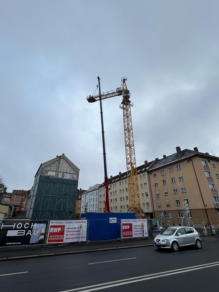 … ein großer Kran!!! Es geht los in der Ludwigstraße in Schweinfurt mit dem Bau eines Mehrfamilienwohnhauses!