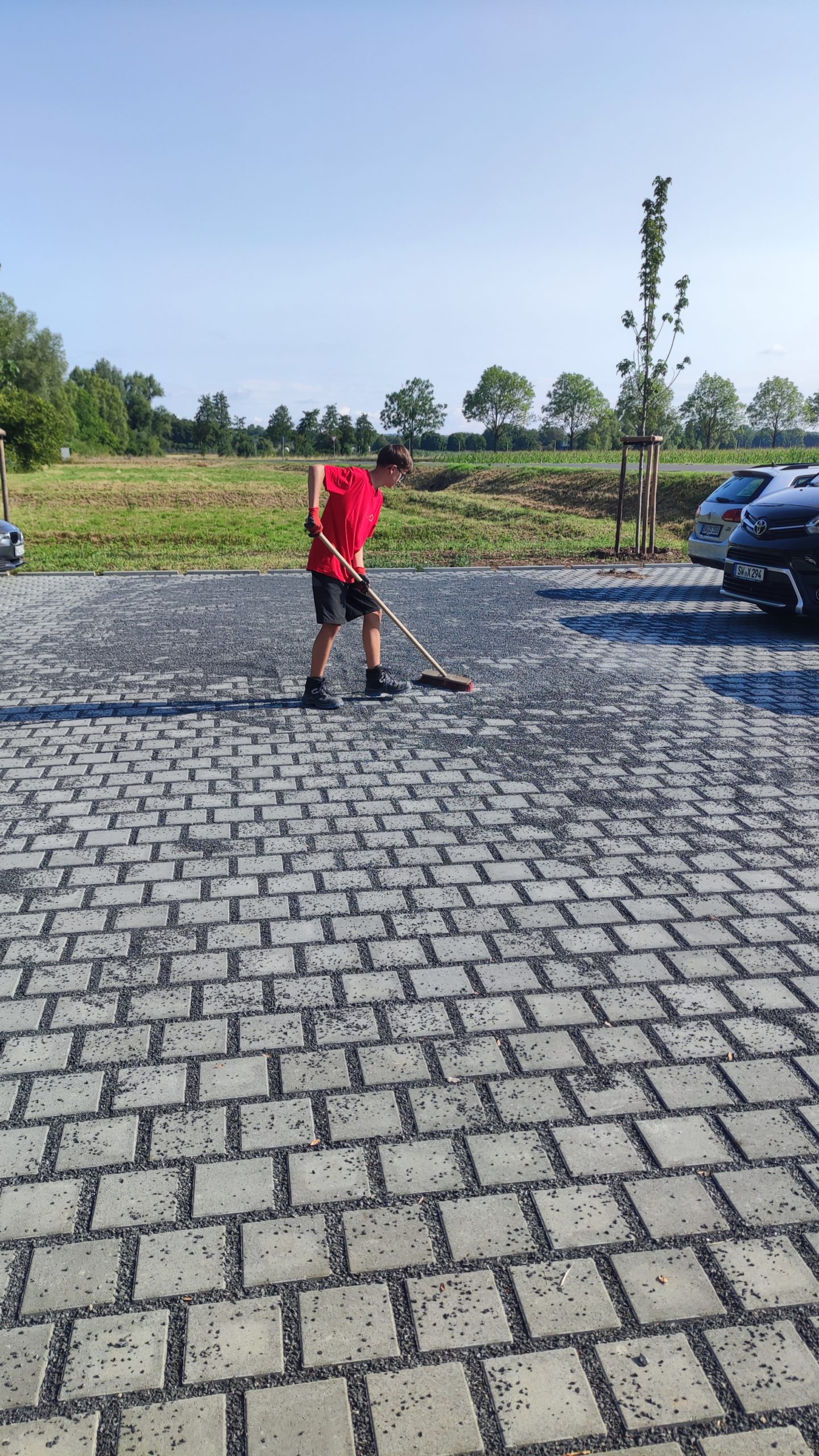 Eine Woche lang „schnuppert“ unser Praktikant in den Beruf des Tiefbauers. Neben dem Pflastern darf auch das Kehren nicht zu kurzkommen 🙂 !!