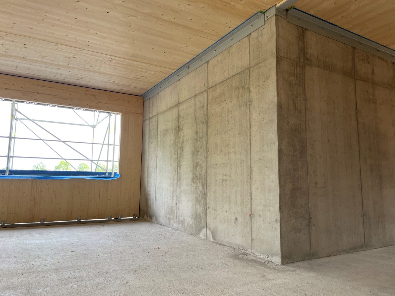 Die beiden Baustoffe wurden in dem neuen und zukunftsorientierten Verwaltungsgebäude des Abwasserzweckverbandes Geldersheim perfekt aufeinander abgestimmt.