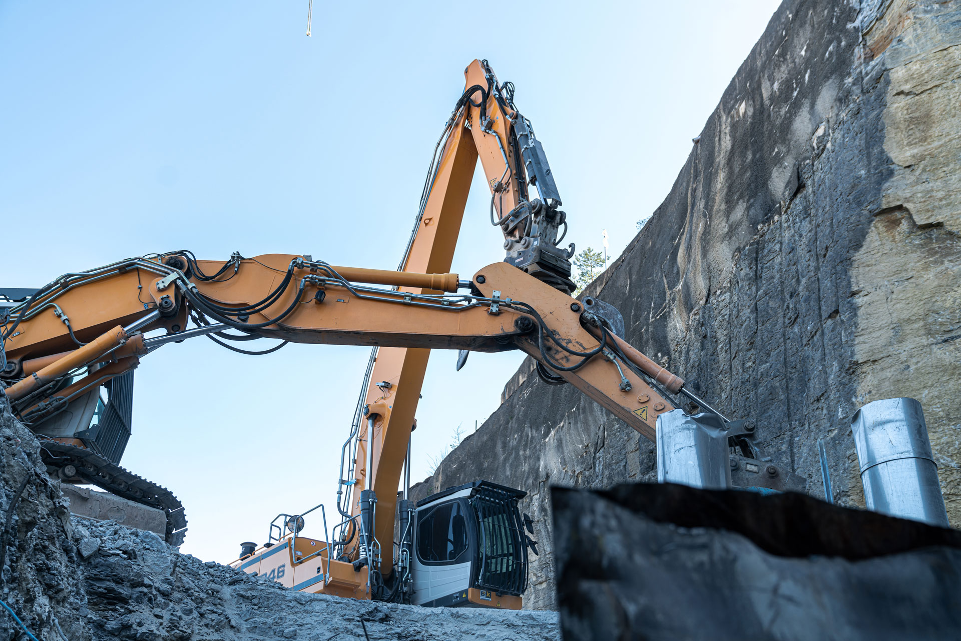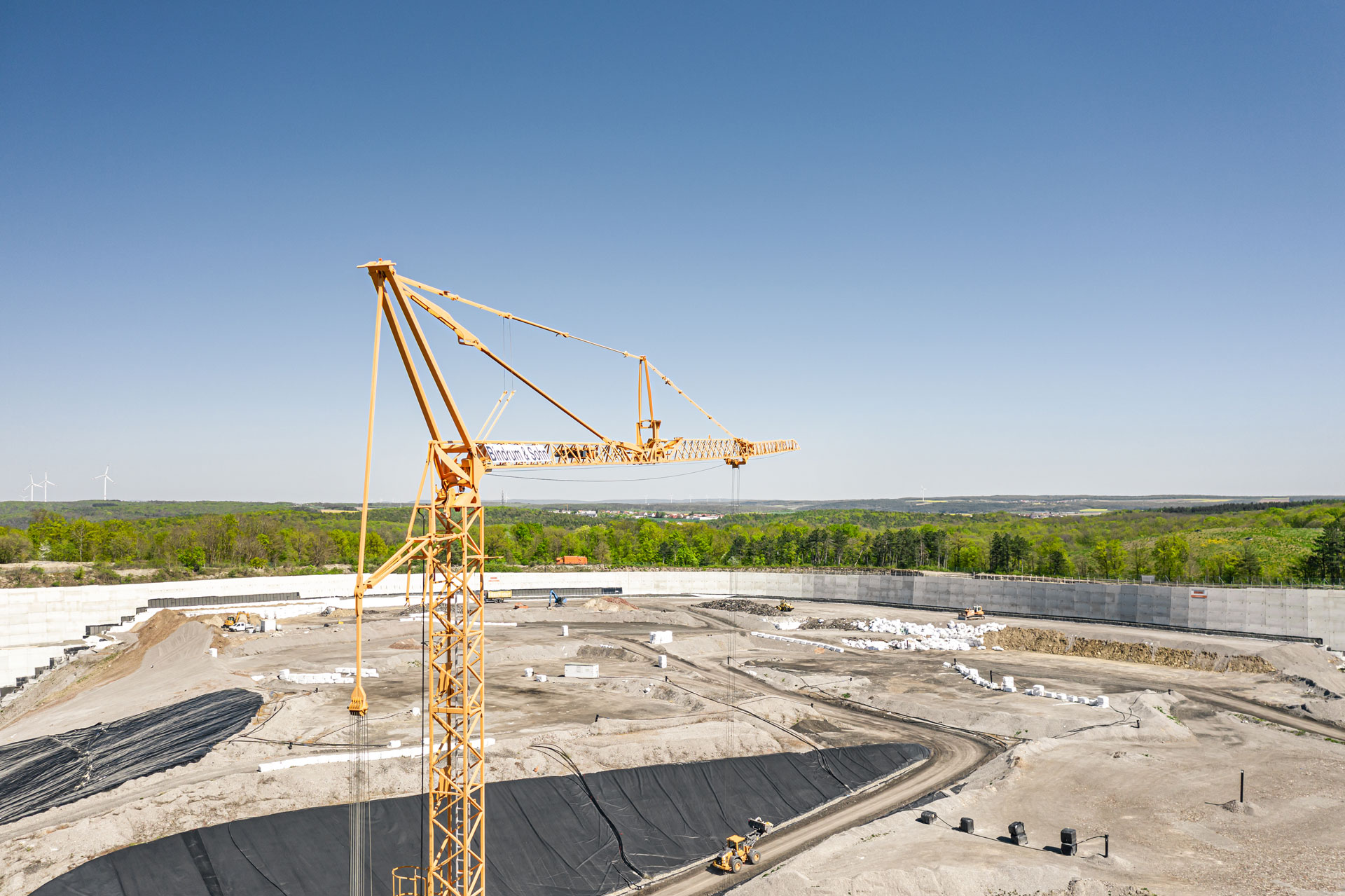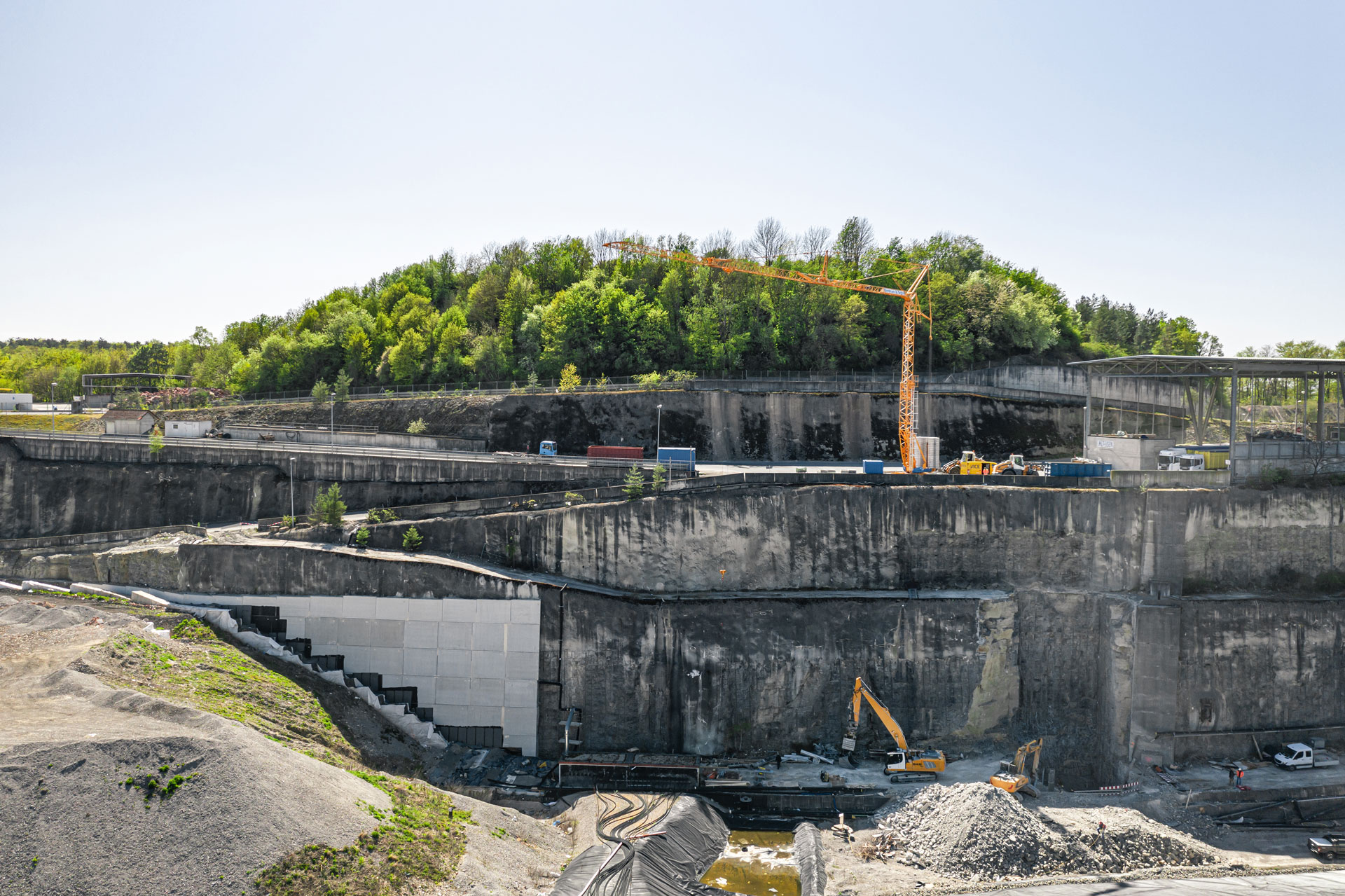 Immer wieder dürfen wir für unseren Auftraggeber, den Landkreis Bad Kissingen, verschiedenste Projekte in der Deponie Wirmsthal abwickeln. In den letzten Jahren, und auch in diesem Projekt wird die 25-30 m hohe Felswand aufwendig mit Betonplatten und Dränbeton verhangen – technisch gut lösbar, aber die Dimension und die Höhe der Arbeitsplätze sind hier nicht zu unterschätzen.