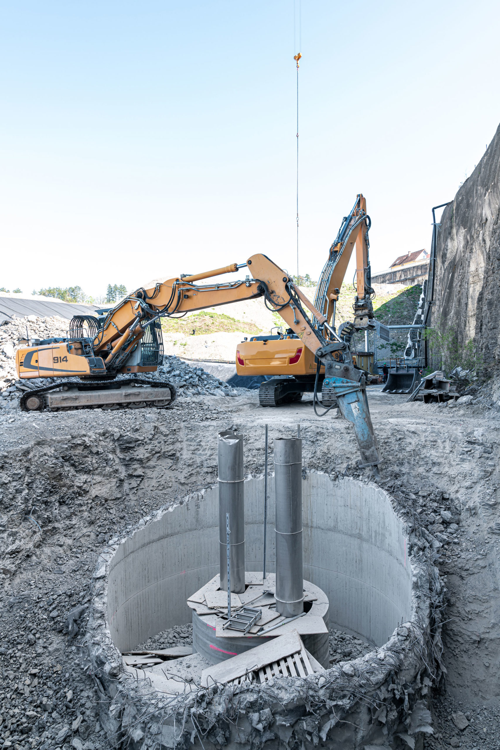 In dieser Maßnahme besonderes ist der eigentliche Hauptteil der Maßnahme – die Verlängerung des Fluchttreppenhauses nach oben; dieses Fluchttreppenhaus dient als Versorgungsschacht und Fluchttreppenhaus für den tief im Müll vergrabenen Versorgungsstollen. Sehr starke Wände, hohe Arbeitsplätze sind fr alle eine Herausforderung.